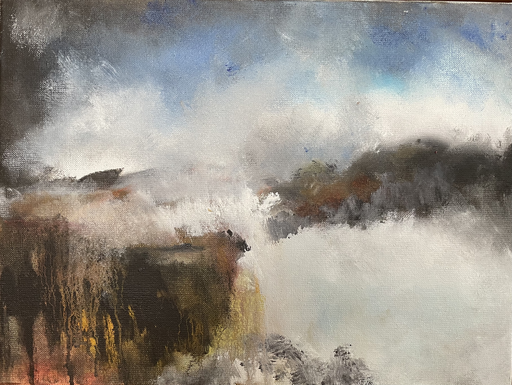 Mijn landschappen zijn zowel figuratief als abstract. Voorafgaand aan het uiteindelijke schilderij hanteer ik uiteenlopende technieken. Met potlood, pastel en houts- kool onderzoek ik het beeld om het ‘in de vingers’ te krijgen.